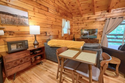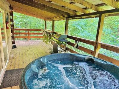 Yesteryear is surrounded by woods, boasts a large covered porch, and has a private Tiki bar on the back. You can relax and forget the world exists out here.
